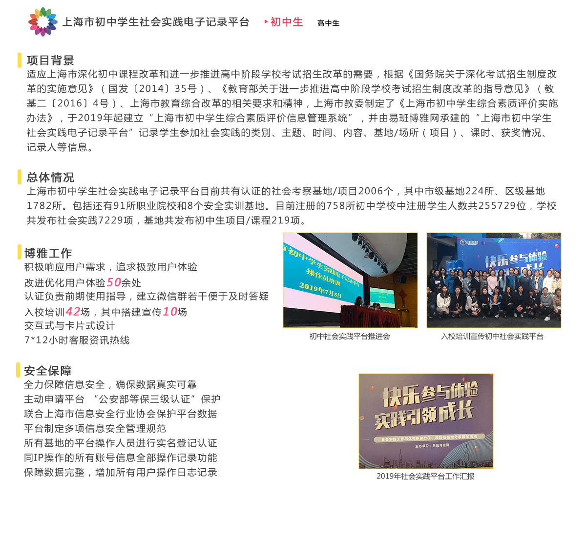 承担上海市普通高中学生综合素质评价的校外实践部分工作,成为上海市学生社会实践信息记录电子平台。