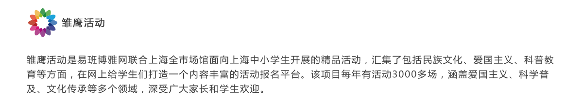 易班博雅网联合全市知名场馆共同开展上海市青少年文化活动产业展示会博雅“暑”你行活动。共有4000多组家庭参与了此次活动。